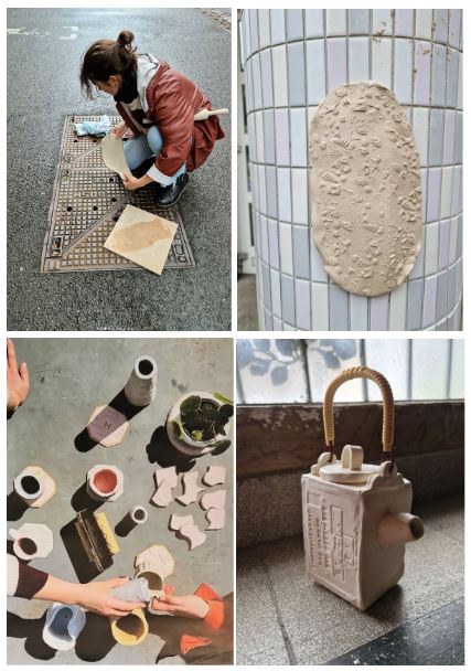 Explorez les paysages urbains environnant l’Abri mémoire en relevant les empreintes que laissent les éléments du quotidien : plaques d’égout, sols texturés, traces et détails souvent ignorés… Ces empreintes sont imprimées directement dans l’argile, puis transformées en pièces uniques de céramique grâce à une cuisson au four.